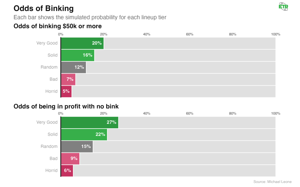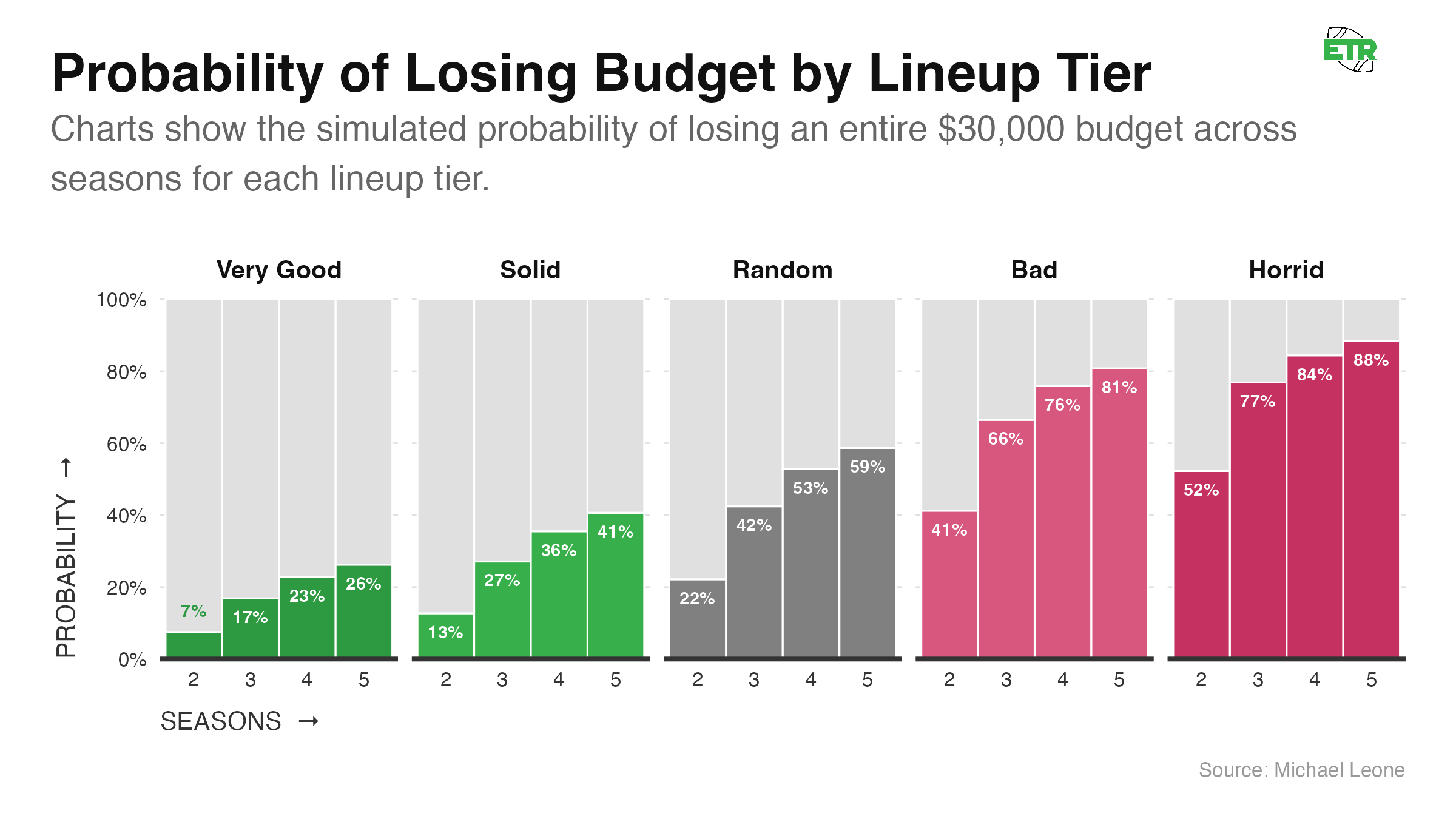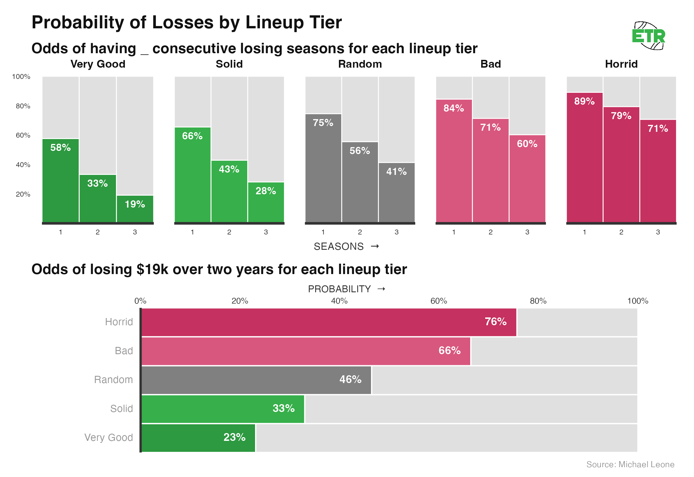 At this point, it’s unlikely (sub-10%) that a good or great lineup goes bust, but a bad lineup is still on the wrong side of a coin flip.