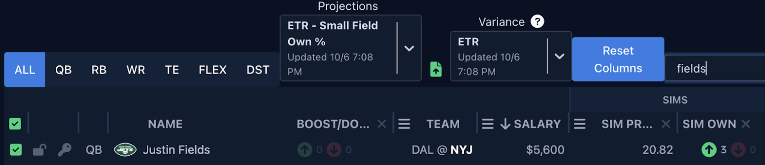 These ownership misses, whether due to an ETR error projection or contest-to-contest variance, are going to change how a lineup simulates post-lock.