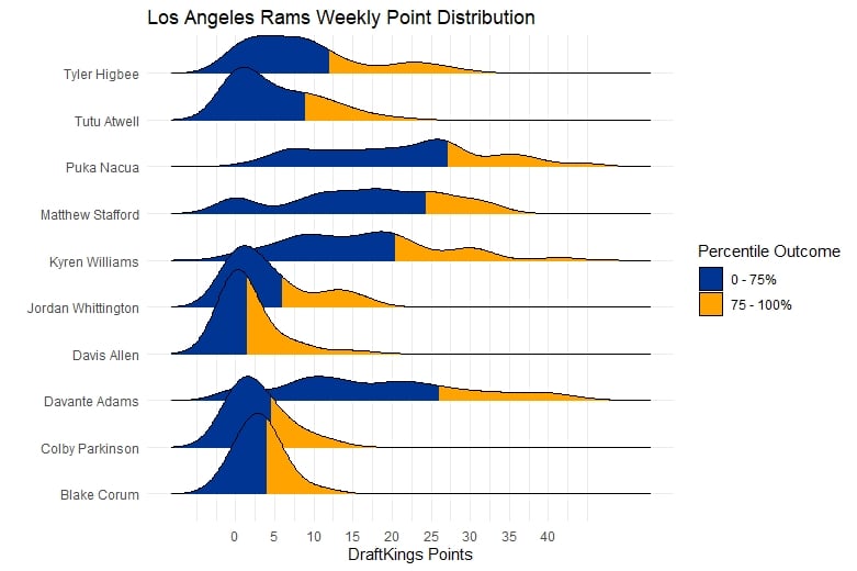 Patriots at Rams ($44600) (279.85%): Captain Cam Akers, Jared Goff, Cooper Kupp, Jakobi Meyers, Rams, Damiere Byrd – (2)