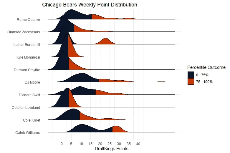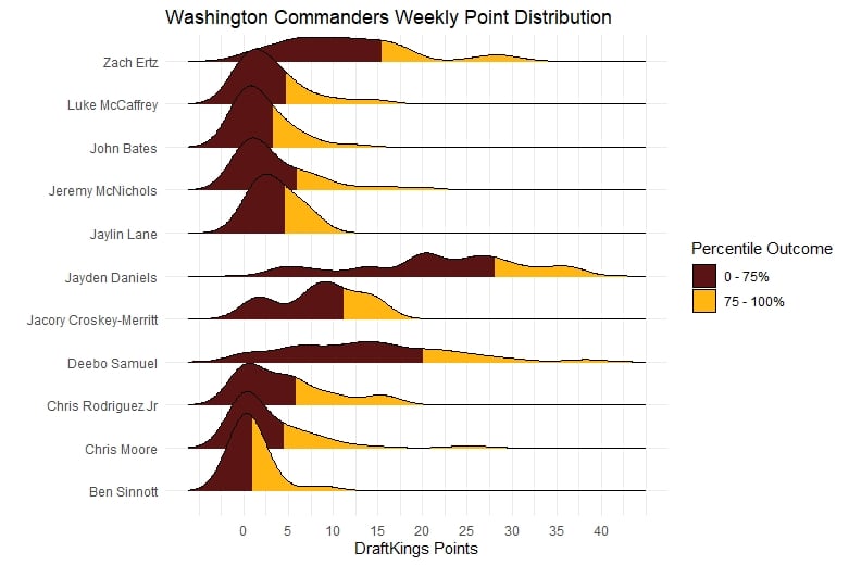 Bears at Commanders ($49400) (226.3%): Captain DJ Moore, Justin Fields, Sam Howell, Curtis Samuel, Logan Thomas, Antonio Gibson – (64)