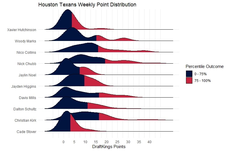 Colts at Texans ($49900) (258.29%): Captain DeAndre Hopkins, Deshaun Watson, Will Fuller, Jonathan Williams, Eric Ebron, Ka’imi Fairbairn – (144)