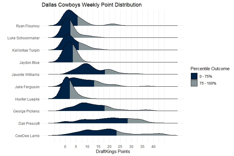 Cowboys at 49ers ($46800) (205.5%): Captain George Kittle, Christian McCaffrey, Tony Pollard, Brock Purdy, 49ers, Jordan Mason – (2)