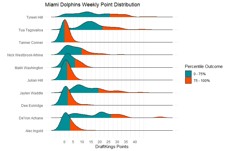 Dolphins at Patriots ($49600) (218.0%): Captain Raheem Mostert, Tyreek Hill, Rhamondre Stevenson, Mac Jones, Hunter Henry, Salvon Ahmed – (24)