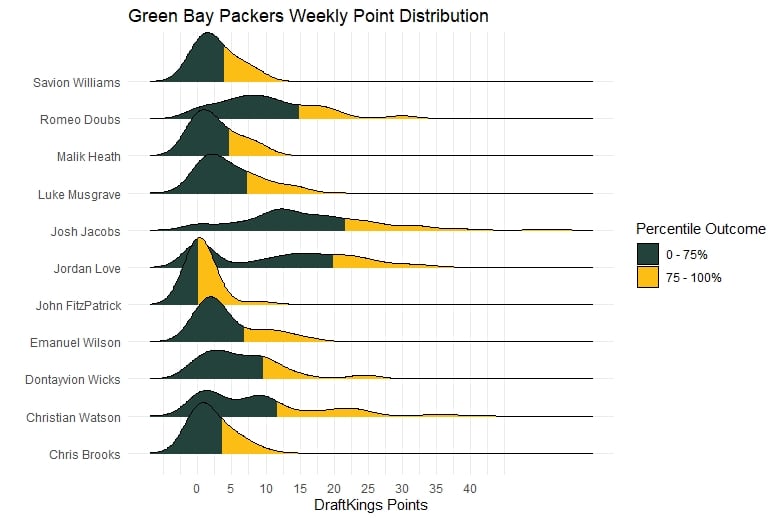 Bears at Packers ($49500): Captain Aaron Jones, Aaron Rodgers, David Montgomery, Sammy Watkins, Mason Crosby, Ryan Griffin
