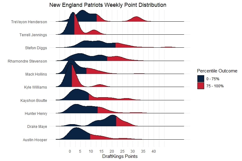 Dolphins at Patriots ($49600) (218.0%): Captain Raheem Mostert, Tyreek Hill, Rhamondre Stevenson, Mac Jones, Hunter Henry, Salvon Ahmed – (24)