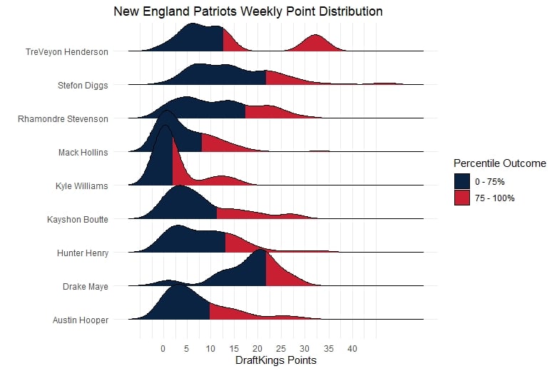 Titans at Patriots ($49000) (218.14%): Captain Derrick Henry, Julian Edelman, James White, Rex Burkhead, Titans DST, Nick Folk – (1)