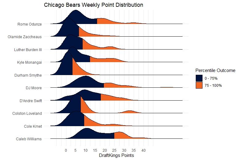 Bears at Commanders ($49400) (226.3%): Captain DJ Moore, Justin Fields, Sam Howell, Curtis Samuel, Logan Thomas, Antonio Gibson – (64)