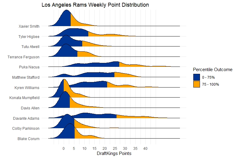 Titans at Rams ($48800) (200.46%): Captain Cooper Kupp, Matthew Stafford, Robert Woods, Geoff Swaim, Sony Michel, Titans – (1)