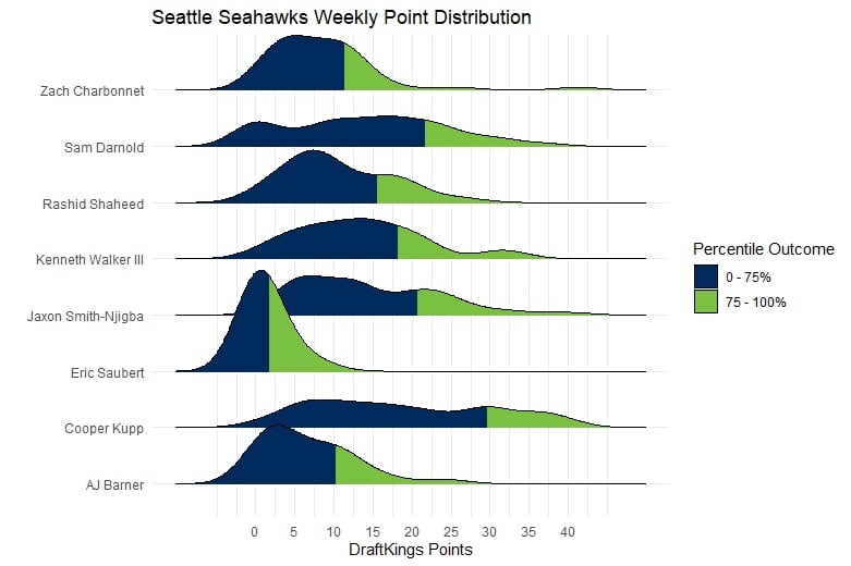 49ers at Seahawks ($49900) (198.36%): Captain Deebo Samuel, Russell Wilson, Raheem Mostert, D.K. Metcalf, Travis Homer, Kyle Juszczyk