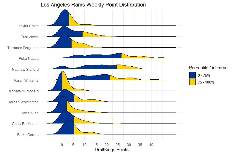 Titans at Rams ($48800) (200.46%): Captain Cooper Kupp, Matthew Stafford, Robert Woods, Geoff Swaim, Sony Michel, Titans – (1)