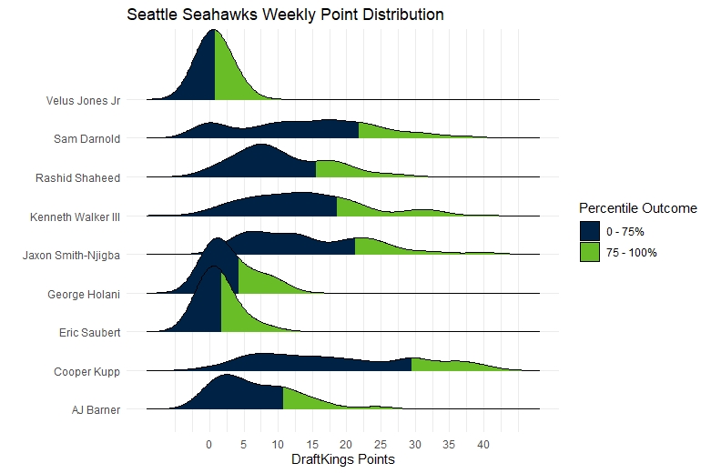 49ers at Seahawks ($49900) (198.36%): Captain Deebo Samuel, Russell Wilson, Raheem Mostert, D.K. Metcalf, Travis Homer, Kyle Juszczyk