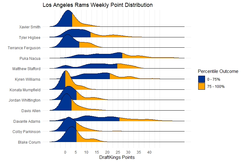 Titans at Rams ($48800) (200.46%): Captain Cooper Kupp, Matthew Stafford, Robert Woods, Geoff Swaim, Sony Michel, Titans – (1)