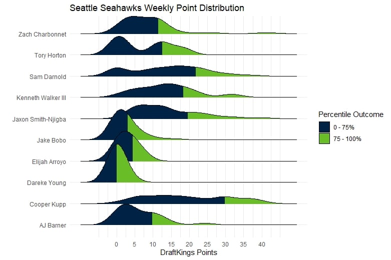 49ers at Seahawks ($49900) (198.36%): Captain Deebo Samuel, Russell Wilson, Raheem Mostert, D.K. Metcalf, Travis Homer, Kyle Juszczyk