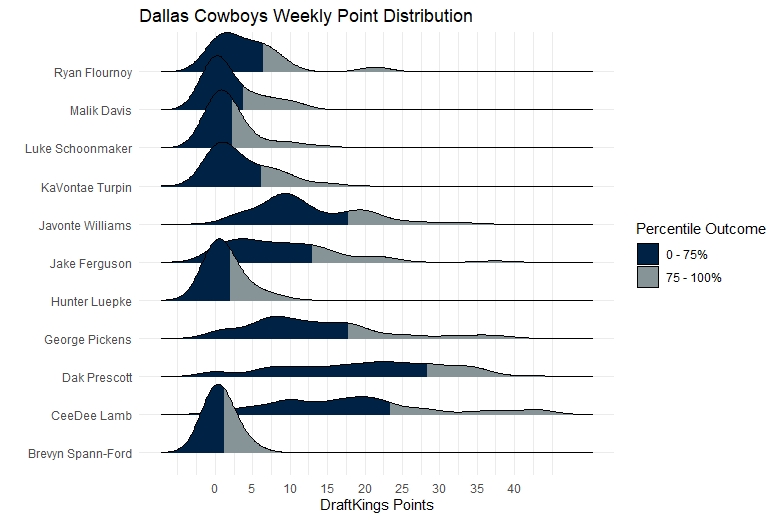 Eagles at Cowboys ($46300) (231.89%): Captain Ezekiel Elliott, Dak Prescott, Amari Cooper, Cowboys DST, Dallas Goedert, Brett Maher – (4)