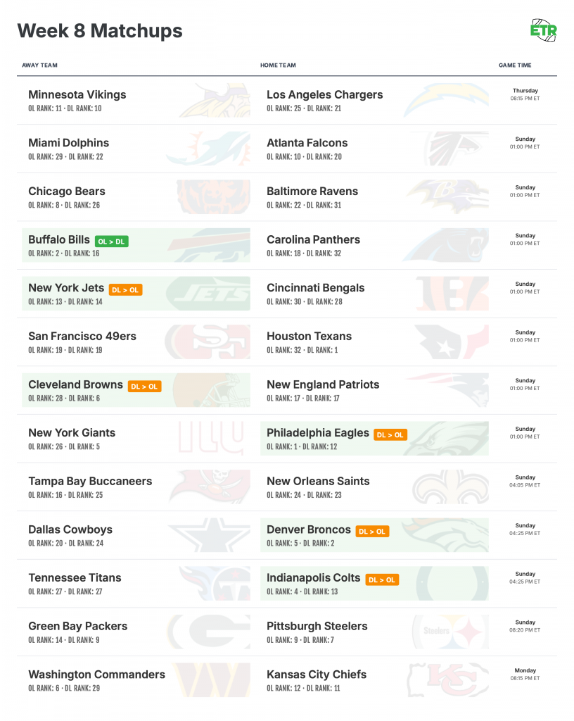 The Jets have been dreadful this season, but Brandon Thorn likes their defensive line's chances against Cincinnati on Sunday. Can Jermaine Johnson II lead their defense to a strong performance and disrupt Joe Flacco consistently? Thorn shares his top trench mismatches ahead of Week 8.